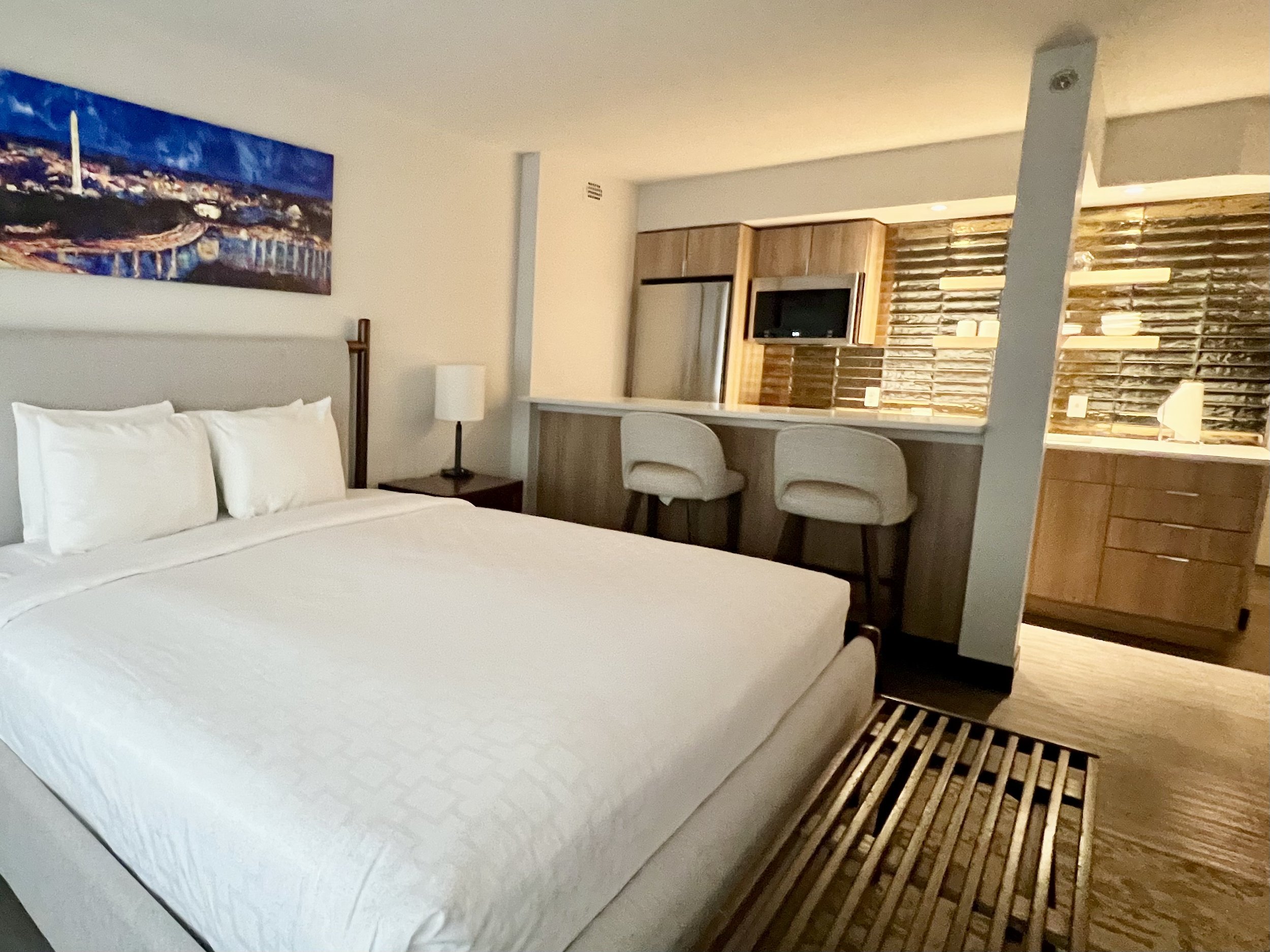 Room at The Quincy with a kitchenette that proved helpful to reheat leftovers and make our own breakfast
